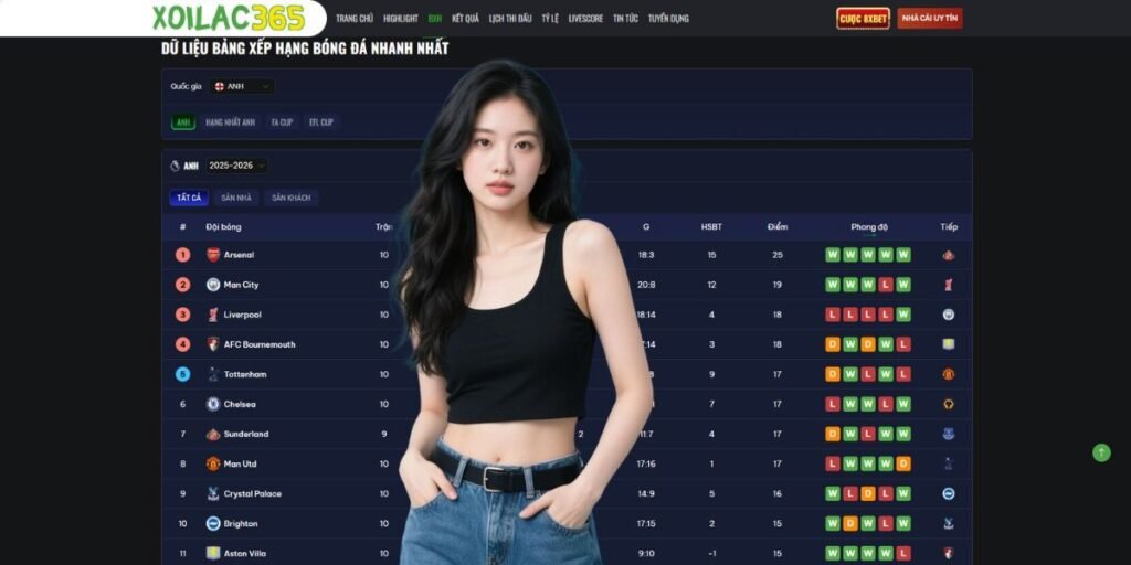 XoilacTV covers the English Premier League comprehensively. The platform provides live updates, results, and bảng xếp hạng bóng đá anh for all participating teams. Popular clubs like Manchester United, Liverpool, Chelsea, Arsenal, Manchester City, and Tottenham Hotspur are included, along with mid table and lower ranked teams. Fans can track standings, follow match results, and analyze team performance across the season. Comprehensive coverage ensures that viewers never miss important updates about their favorite teams or matches.